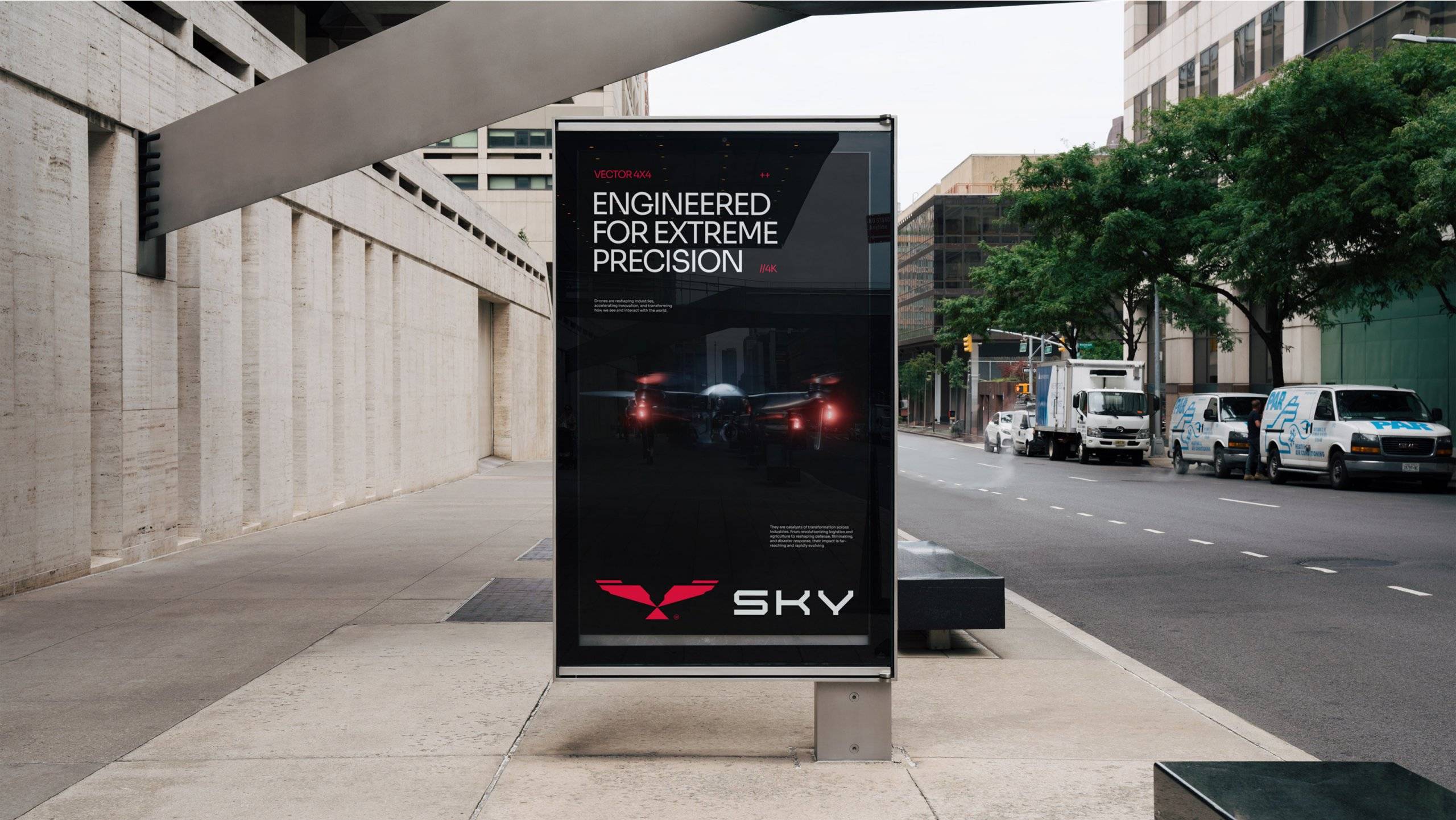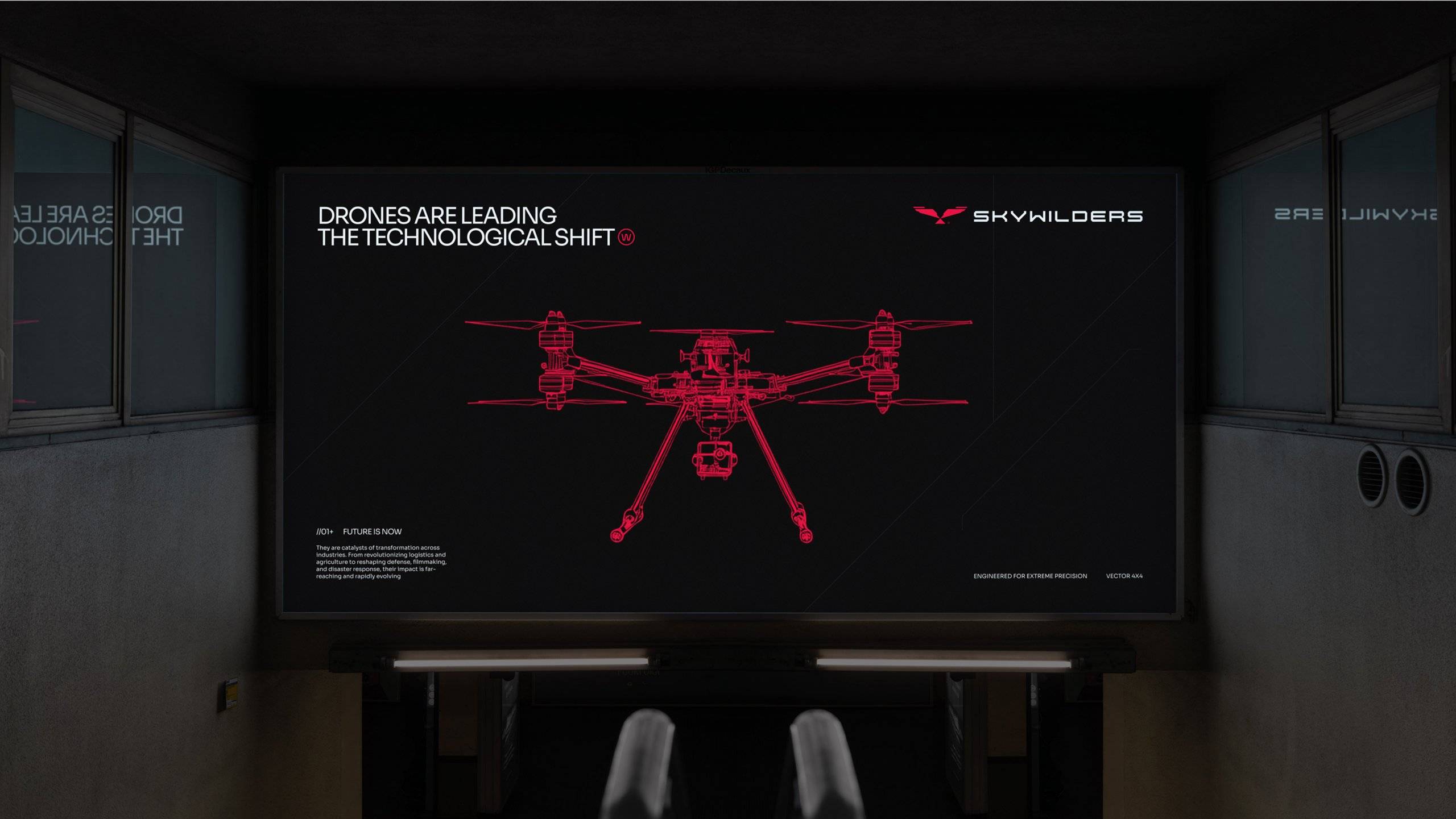 Skywilders to marka produkująca bezzałogowce klasy dual-use — zarówno dla sektora cywilnego, jak i służb odpowiedzialnych za bezpieczeństwo publiczne. Zespół stanął przed wyzwaniem zbudowania marki od podstaw: od strategii, przez nazwę, po kluczowe elementy tożsamości wizualnej. Celem było uchwycenie dzikiego, ambitnego ducha, który napędza organizację, przy jednoczesnym zachowaniu profesjonalizmu i technologicznej precyzji. Ważna była również silna narracja europejska – odwołanie do rodzimej myśli technicznej jako konkurencyjnej wobec globalnych gigantów.