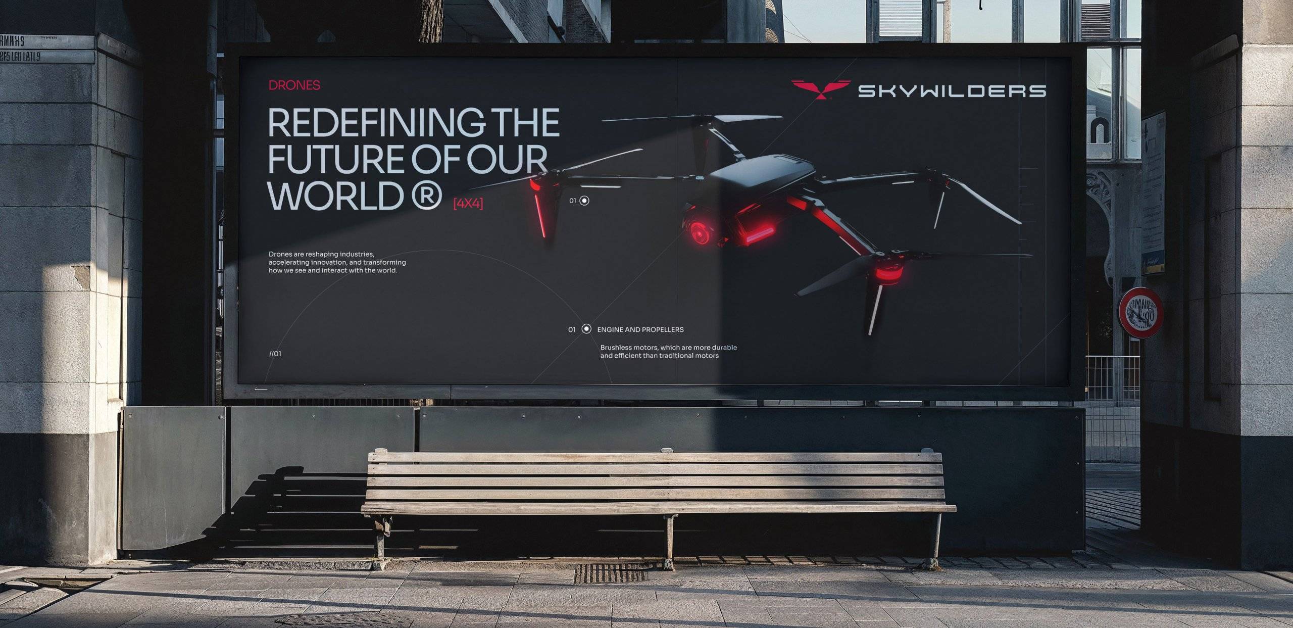 Skywilders to marka produkująca bezzałogowce klasy dual-use — zarówno dla sektora cywilnego, jak i służb odpowiedzialnych za bezpieczeństwo publiczne. Zespół stanął przed wyzwaniem zbudowania marki od podstaw: od strategii, przez nazwę, po kluczowe elementy tożsamości wizualnej. Celem było uchwycenie dzikiego, ambitnego ducha, który napędza organizację, przy jednoczesnym zachowaniu profesjonalizmu i technologicznej precyzji. Ważna była również silna narracja europejska – odwołanie do rodzimej myśli technicznej jako konkurencyjnej wobec globalnych gigantów.